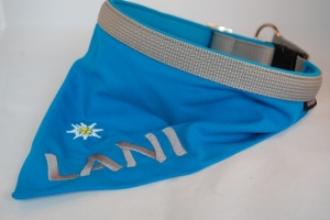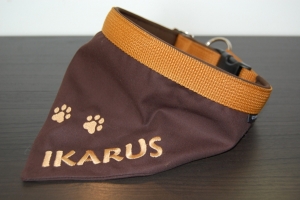 Unser Hundehalstuch mit integriertem Halsband wird nach den Massen Ihres Vierbeiners gefertigt.